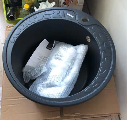 Черная круглая мойка, отлично подошла к нашей кухне. Чаша достаточно глубокая, вместительная, посуду мыть удобно. В остальном недостатков пока не обнаружено.